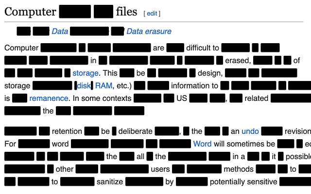 Redacted Internet provides a stylized browsing experience by visually 'redacting' a portion of text on any website to simulate a classified document aesthetic.